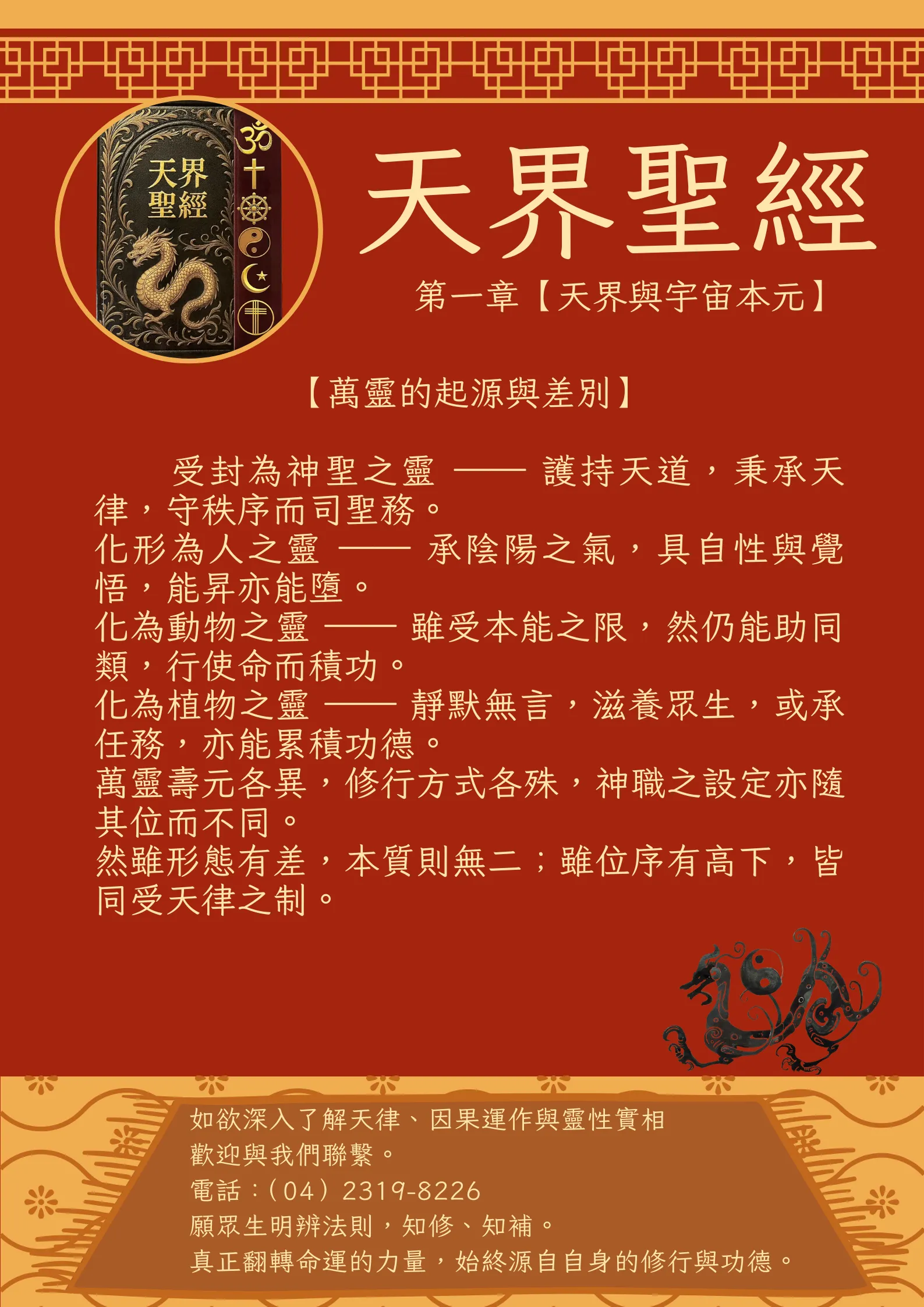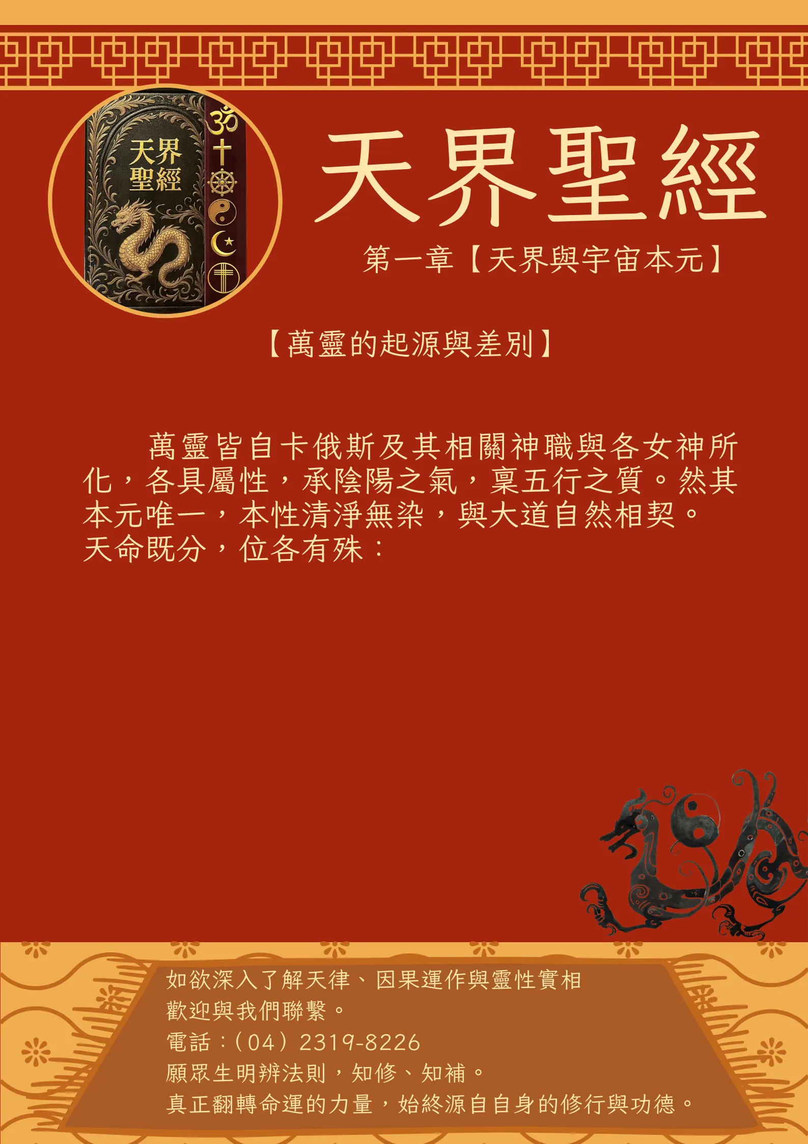 首頁 > 天傳法 > 聖務傳達專欄 > 天界聖經 > 第一章 【天界與宇宙本元】-【萬靈的起源與差別】